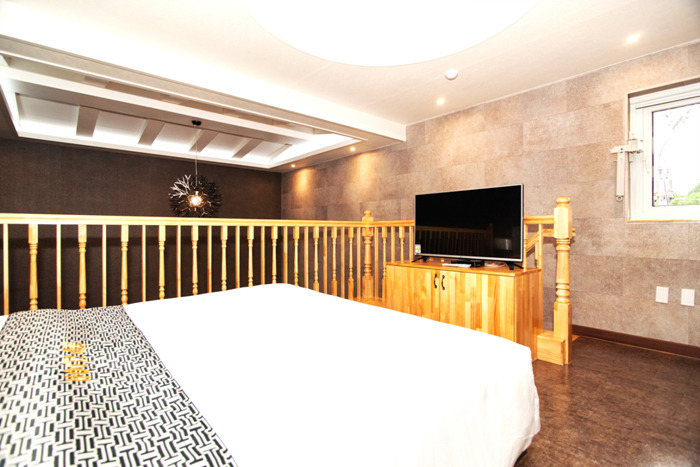 특실 (복층) click ⇒ 숙박 예약하기 (네이버예약) 아래층에는 컴퓨터, TV와 소파, 욕실이 위치하고 윗층에는 TV와 침실이 구성되어 특이하고 고급스러운 느낌을 느끼실 수 있습니다. 전체 2대의 TV와 2대의 에어컨을 각각 배치하여 쾌적하고 편안합니다. 또한 미니 전자레인지를 구비하여 간단한 음식을 데워 드실 수 있는 편의를 제공해 드립니다. 넓은 입체 공간 2층 침실공간
